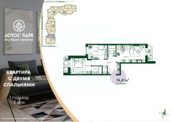 Продаётся 2-комнатная квартира в строящемся доме (Дом 2), срок сдачи: I-кв. 2026, общей площадью 74.41 кв.м., на 4 этаже.