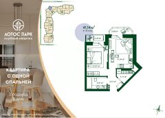 Продаётся 1-комнатная квартира в строящемся доме (Дом 2), срок сдачи: I-кв. 2026, общей площадью 41.14 кв.м., на 6 этаже.