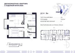 Продаётся 2-комнатная квартира в строящемся доме (Дом 4), срок сдачи: IV-кв. 2026, общей площадью 53.63 кв.м., на 4 этаже. Аксиома на Тихореченской
