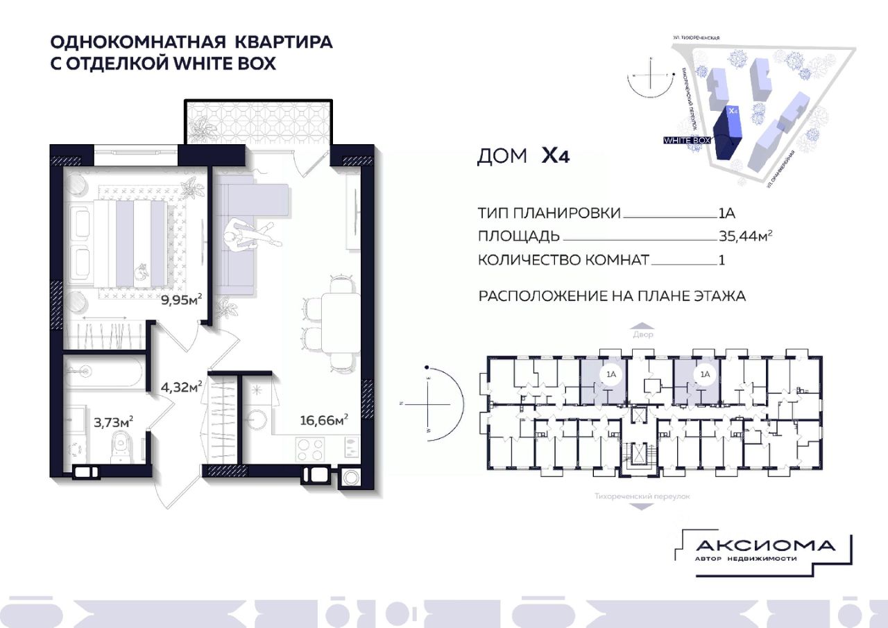 Продаётся 1-комнатная квартира в строящемся доме (Дом 4), срок сдачи: IV-кв. 2026, общей площадью 35.44 кв.м., на 6 этаже. Аксиома на Тихореченской