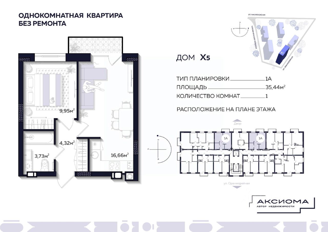 Продаётся 1-комнатная квартира в строящемся доме (Дом 5), срок сдачи: IV-кв. 2026, общей площадью 35.44 кв.м., на 6 этаже. Аксиома на Тихореченской