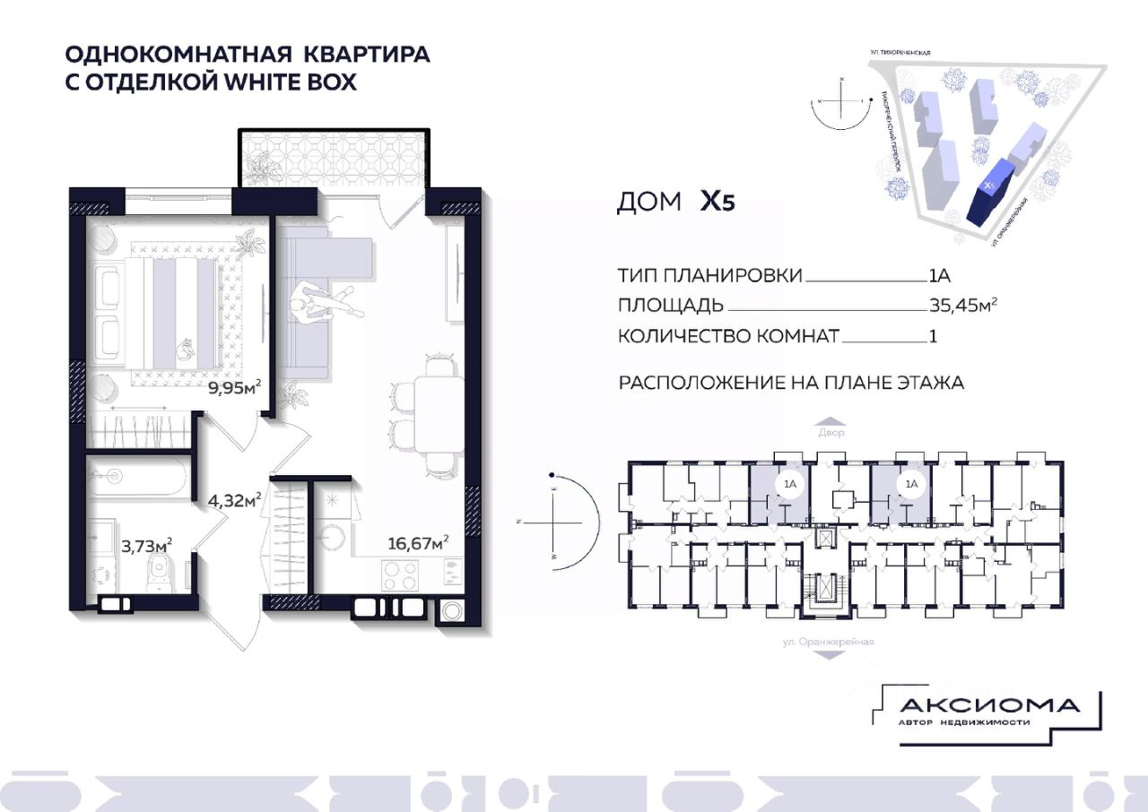 Продаётся 1-комнатная квартира в строящемся доме (Дом 5), срок сдачи: II-кв. 2027, общей площадью 35.45 кв.м., на 8 этаже. Аксиома на Тихореченской