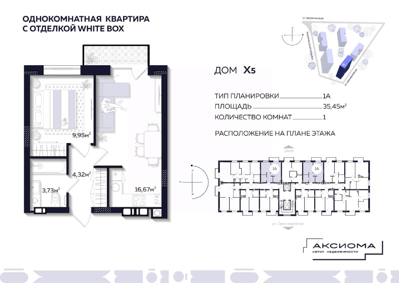 Продаётся 1-комнатная квартира в строящемся доме (Дом 5), срок сдачи: IV-кв. 2026, общей площадью 35.45 кв.м., на 9 этаже. Аксиома на Тихореченской