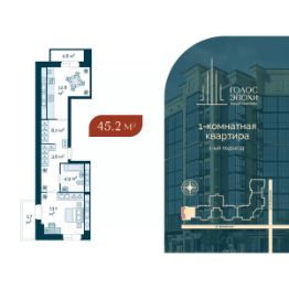Продаётся 1-комнатная квартира в строящемся доме (Дом 1), срок сдачи: IV-кв. 2025, общей площадью 45.2 кв.м., на 4 этаже. Жилой комплекс "Голос Эпохи" возводится в центральной части города Астрахань. Представляет собой девяти этажное кирпично-монолитное здание на 192 квартиры и 16 офисных помещений, выполненное в стиле АР-ДЕКО.