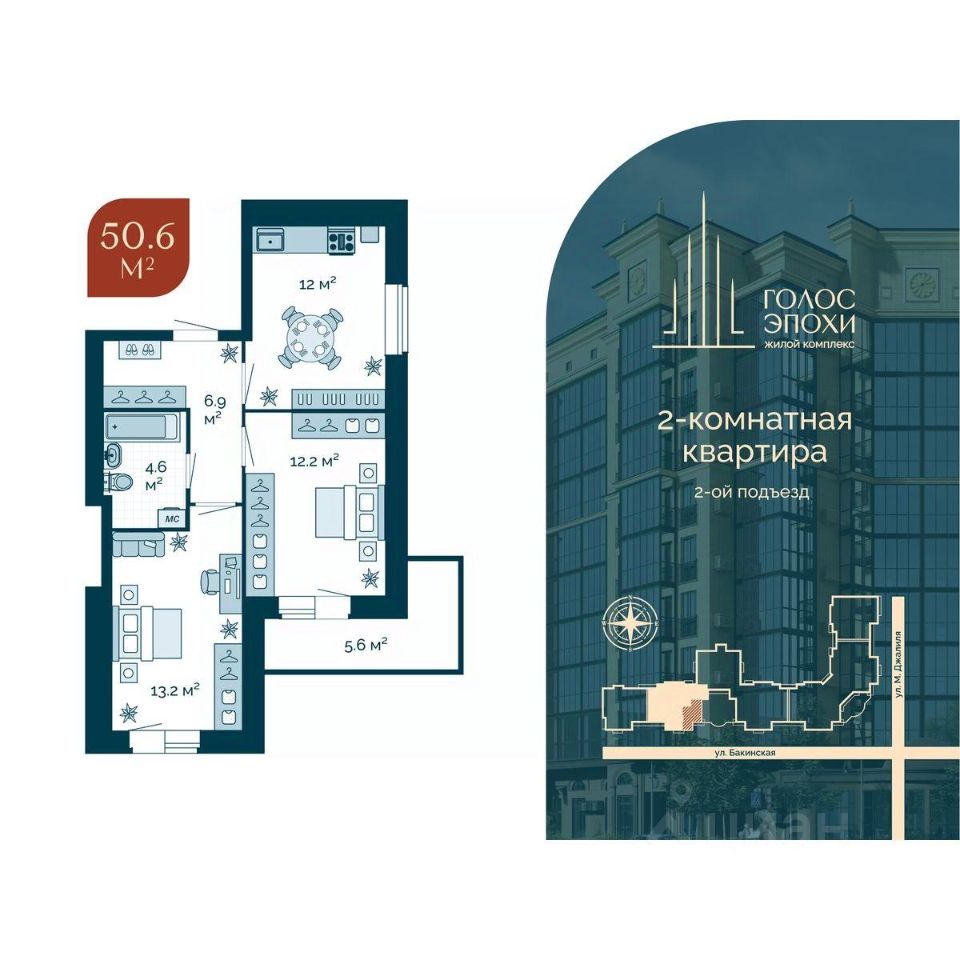 Продаётся 2-комнатная квартира в строящемся доме (Дом 1), срок сдачи: IV-кв. 2025, общей площадью 50.6 кв.м., на 9 этаже. Жилой комплекс "Голос Эпохи" возводится в центральной части города Астрахань. Представляет собой девяти этажное кирпично-монолитное здание на 192 квартиры и 16 офисных помещений, выполненное в стиле АР-ДЕКО.