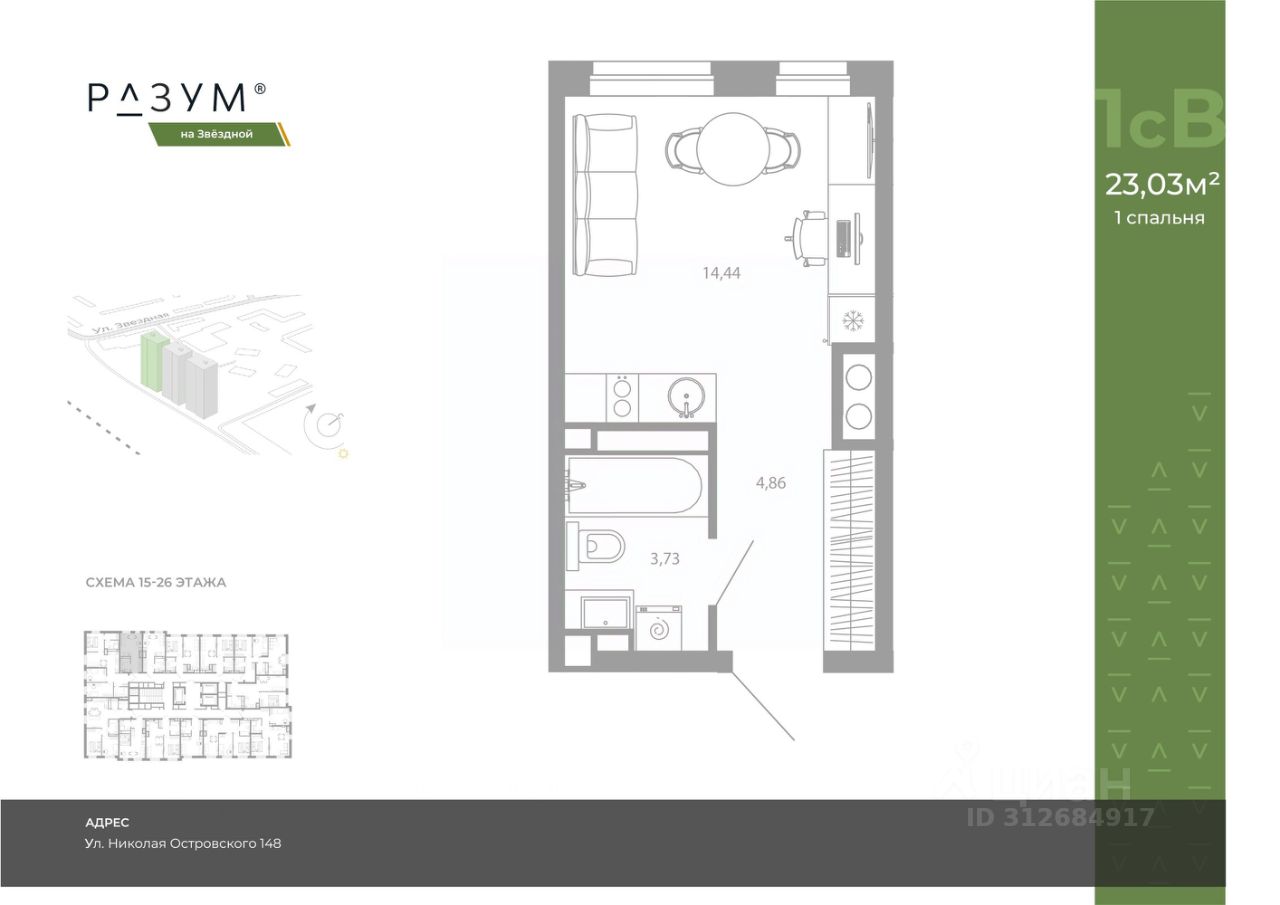 Три 26-этажных дома расположены в границах ул. Звездной и Николая Островского. В пешей доступности: