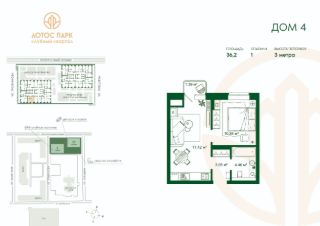 Продаётся 1-комнатная квартира в строящемся доме (Дом 4), срок сдачи: IV-кв. 2027, общей площадью 36.2 кв.м., на 3 этаже.