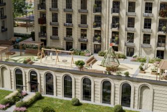 "Лотос парк" - это единое приватное пространство с кинотеатром, зоной барбекю, многофункциональной спортивной площадкой и двухуровневыми детскими зонами.