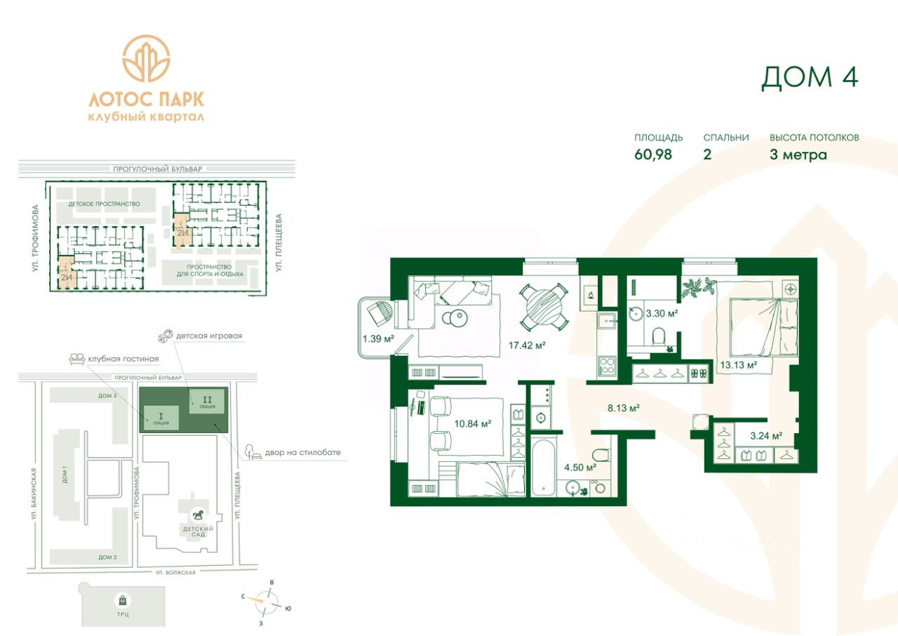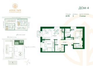 Продаётся 2-комнатная квартира в строящемся доме (Дом 4), срок сдачи: IV-кв. 2027, общей площадью 60.6 кв.м., на 17 этаже.
