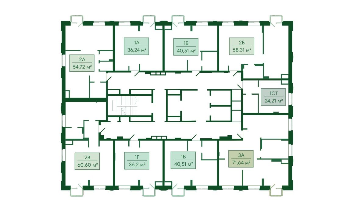 Планировки квартир имеют нетривиальные проектировочные решения и впечатляют своим объемом (высота потолков от 3 до 3,4 м), вариативностью (площадь квартир от 40 до 130 кв. м., приватностью (от 2-х квартир на площадке) и завораживающими видами из панорамных окон.