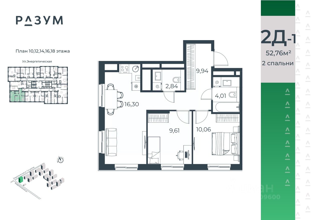 "РАЗУМ на Энергетической" — первый масштабный жилой район от девелопера "РАЗУМ" площадью 12 гектаров в мкр. Бабаевского на ул. Энергетическая, созданный по концепции "город в городе". Это 4 квартала — 18 домов от 10 до 18 этажей с собственными школой, детским садом и торговым центром. В каждом квартале есть свой двор-парк с локациями развлечений и отдыха, беседками и цветущими растениями. А также прогулочный бульвар "Свой центр" с площадками для тихого отдыха и активностей с отдельной экосистемой коммерции для всей семьи. 12 га застройка Детский сад на 250 мест Школа Торговый центр 2,5 км велодорожки с двусторонним движением "Город в городе" со своей коммерцией Спортивные пространства 60 % озеленения Зона ожидания в холле Кладовые в 14 и 18-этажных башнях Квартиры с балконами Квартиры с террасами на 1 этажах, выходящие в закрытый двор Индивидуальное отопление
