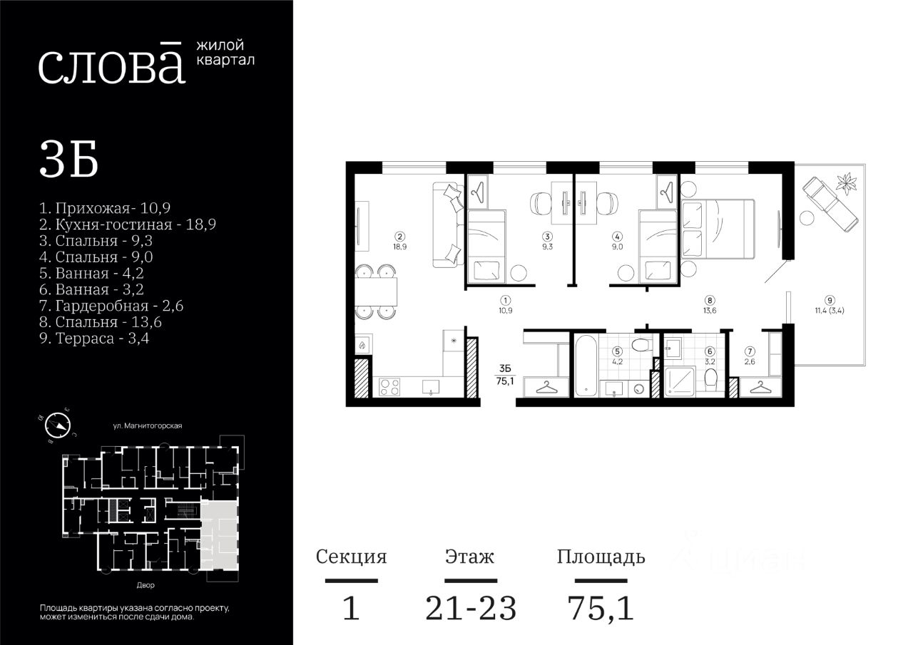 Общая площадь75,39 м²