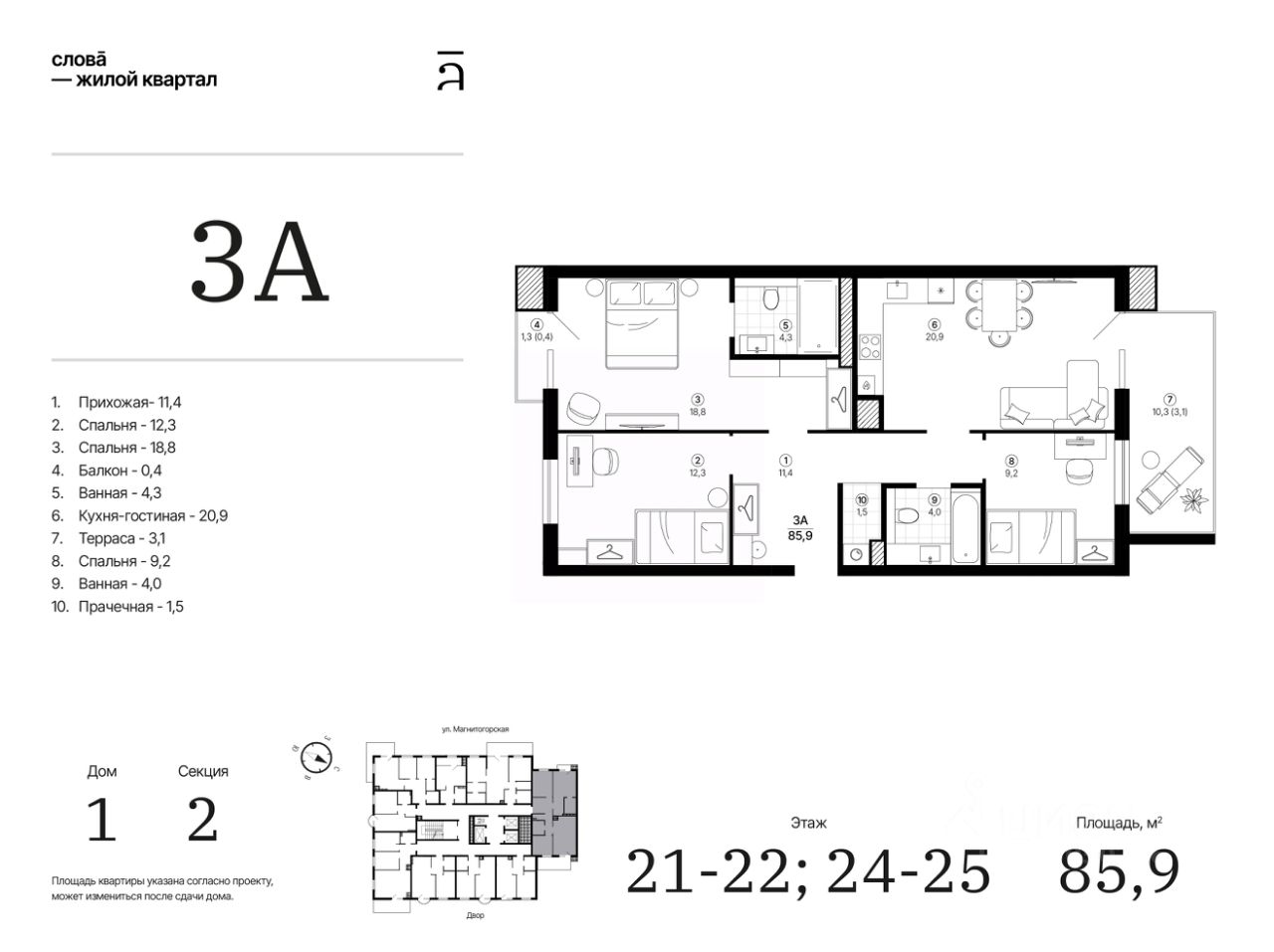 Жилой квартал "Слова" - это новые смыслы на карте города. В них мы заложили фундамент из собственного представления о совершенном жилье. Данное название отражает теплоту и уют добрососедства, а также многонациональность нашего города. Ведь именно слова могут быть ключом к настоящему пониманию друг друга, безграничной эмпатии и взаимодействия. Каждый житель найдёт здесь то, что важно именно для него: • закрытую территорию с круглосуточным видеонаблюдением; • подземный паркинг, в который можно попасть на лифте прямо с этажа квартиры; • камерный двор-парк с тихими зонами, детскими площадками и зонами для активного отдыха; • потрясающую детскую инфраструктуру; • просторные балконы и террасы. Район и инфраструктура Исторический. Мультикультурный. Разнообразный. Для нашего первого жилого квартала мы выбрали Кировский район, где нам удалось реализовать концепцию 15 минутного города. При этом дом расположен в глубине тихого квартала, в центре собственного парка. Все необходимое для комфортной жизни расположено в пешей доступности: • Школы • Детские сады • Магазины • Медицинский кластер • Спортивные объекты • Досуговые центры Благоустройство Продумывая до мелочей основное пространство, мы не могли обойти вниманием территорию двора. Благоустроенный приватный двор с парковой зоной, на котором расположится: • игровая площадка для детей дошкольного возраста • игровая зона для джуниоров • спортивная площадка • событийная площадь • пешеходные маршруты • эксплуатируемая кровля коммерческих помещений (общая терраса) • тихая зона Мы спланировали двор таким образом, что он станет вашим особым местом, который мы спроектировали по системе "без машин и посторонних". Ландшафт Наши ландшафтные архитекторы позаботились о каждой детали и подобрали коллекцию растений от нежных злаковых, до утонченных многолетников. Таким образом под окнами дома раскинется ароматный луг. Лобби Интерьер главного общественного пространства вдохновлен стилем Джапанди в сочетании Азии и Скандинавии. Во главе угла здесь современные натуральные материалы, мягкие округлые формы и минималистичный функционал. Дети могут проводить время в игровой зоне, пока вы обсуждаете за кофе на просторном диване планы на лето. Предусмотрели специальные места для хранения велосипедов, колясок и самокатов. Для питомцев продуманы лапомойки. В каждом подъезде имеется один грузо-пассажирский и два пассажирских скоростных лифта. Хорошо, когда для каждого жителя комфортное пространство не ограничивается пределами собственной квартиры. Паркинг Наличие подземного паркинга одно из преимуществ нашего проекта, который подарит уверенность в сохранности автомобиля. Для нас было важной задачей создать удобный и защищенный паркинг, в который можно попасть прямо с этажа квартиры. Для нас забота друг о друге и поддержка становятся необычайно важными, ведь жить в жилом квартале "Слова" - значит быть частью настоящего дружного комьюнити.