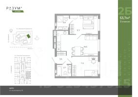 Общая площадь53,7 м²