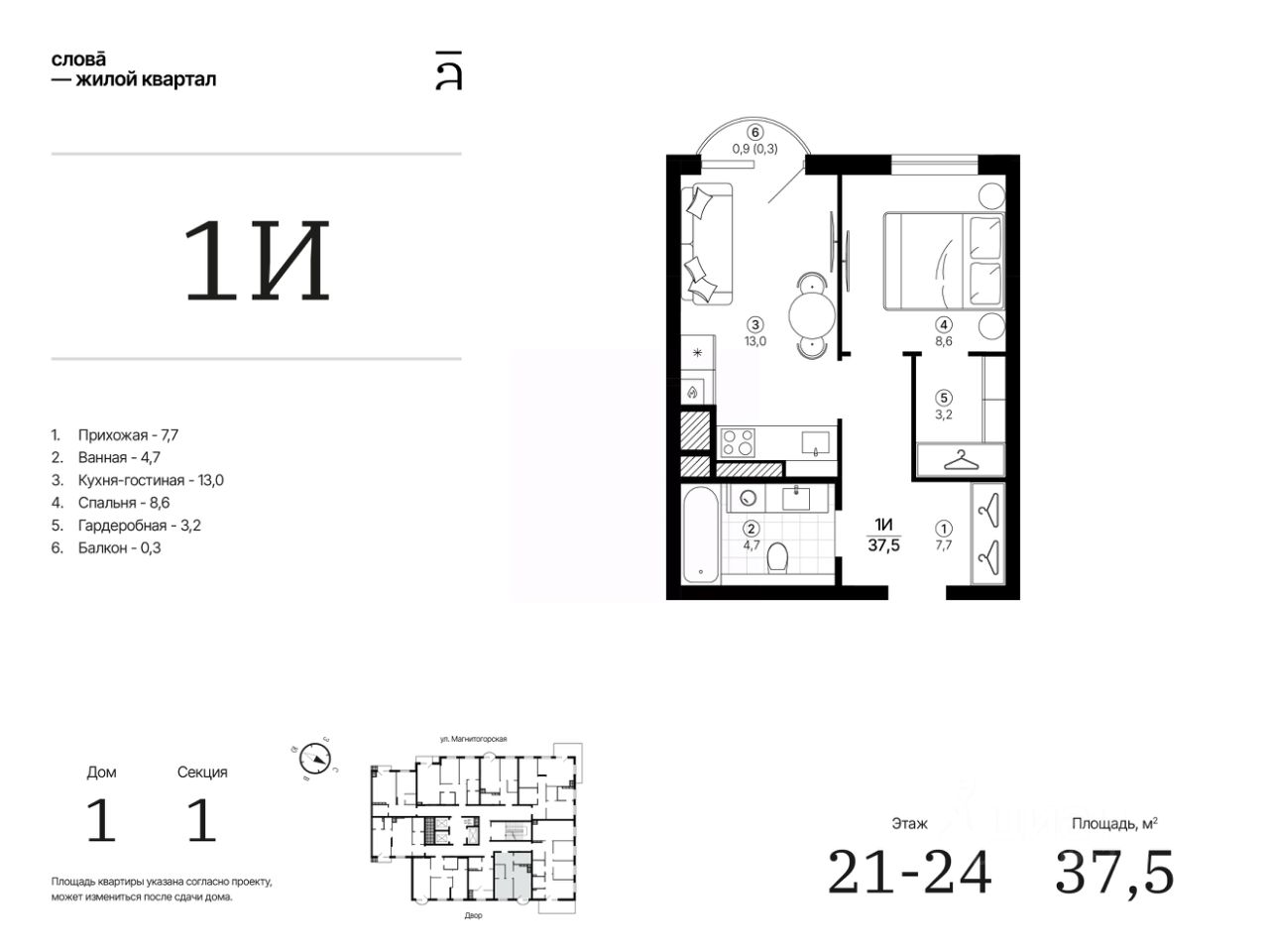 Общая площадь37,54 м²