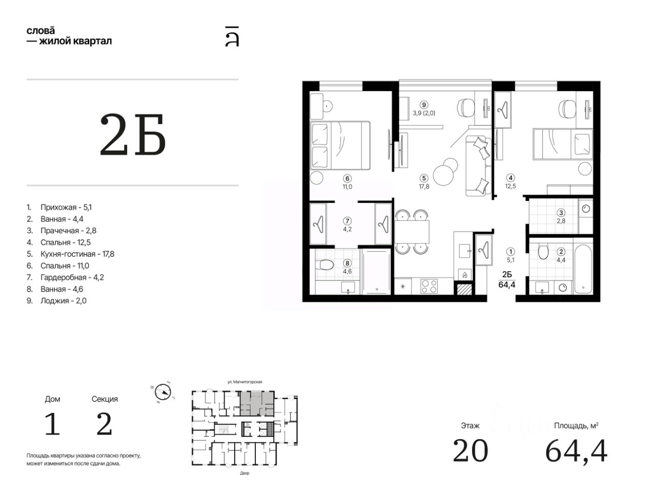 Общая площадь64,37 м²