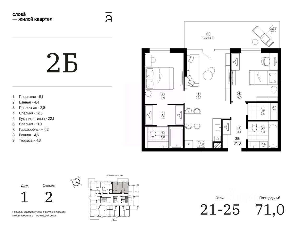 Жилой квартал "Слова" - это новые смыслы на карте города. В них мы заложили фундамент из собственного представления о совершенном жилье. Данное название отражает теплоту и уют добрососедства, а также многонациональность нашего города. Ведь именно слова могут быть ключом к настоящему пониманию друг друга, безграничной эмпатии и взаимодействия. Каждый житель найдёт здесь то, что важно именно для него: • закрытую территорию с круглосуточным видеонаблюдением; • подземный паркинг, в который можно попасть на лифте прямо с этажа квартиры; • камерный двор-парк с тихими зонами, детскими площадками и зонами для активного отдыха; • потрясающую детскую инфраструктуру; • просторные балконы и террасы. Район и инфраструктура Исторический. Мультикультурный. Разнообразный. Для нашего первого жилого квартала мы выбрали Кировский район, где нам удалось реализовать концепцию 15 минутного города. При этом дом расположен в глубине тихого квартала, в центре собственного парка. Все необходимое для комфортной жизни расположено в пешей доступности: • Школы • Детские сады • Магазины • Медицинский кластер • Спортивные объекты • Досуговые центры Благоустройство Продумывая до мелочей основное пространство, мы не могли обойти вниманием территорию двора. Благоустроенный приватный двор с парковой зоной, на котором расположится: • игровая площадка для детей дошкольного возраста • игровая зона для джуниоров • спортивная площадка • событийная площадь • пешеходные маршруты • эксплуатируемая кровля коммерческих помещений (общая терраса) • тихая зона Мы спланировали двор таким образом, что он станет вашим особым местом, который мы спроектировали по системе "без машин и посторонних". Ландшафт Наши ландшафтные архитекторы позаботились о каждой детали и подобрали коллекцию растений от нежных злаковых, до утонченных многолетников. Таким образом под окнами дома раскинется ароматный луг. Лобби Интерьер главного общественного пространства вдохновлен стилем Джапанди в сочетании Азии и Скандинавии. Во главе угла здесь современные натуральные материалы, мягкие округлые формы и минималистичный функционал. Дети могут проводить время в игровой зоне, пока вы обсуждаете за кофе на просторном диване планы на лето. Предусмотрели специальные места для хранения велосипедов, колясок и самокатов. Для питомцев продуманы лапомойки. В каждом подъезде имеется один грузо-пассажирский и два пассажирских скоростных лифта. Хорошо, когда для каждого жителя комфортное пространство не ограничивается пределами собственной квартиры. Паркинг Наличие подземного паркинга одно из преимуществ нашего проекта, который подарит уверенность в сохранности автомобиля. Для нас было важной задачей создать удобный и защищенный паркинг, в который можно попасть прямо с этажа квартиры. Для нас забота друг о друге и поддержка становятся необычайно важными, ведь жить в жилом квартале "Слова" - значит быть частью настоящего дружного комьюнити.