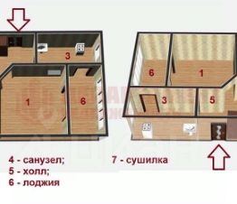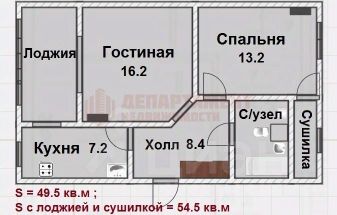 Гостиная совмещена с большой лоджией. Из спальни выход на закрытую сушилку/балкон. Из кухни предусмотрен 2-й выход на лоджию