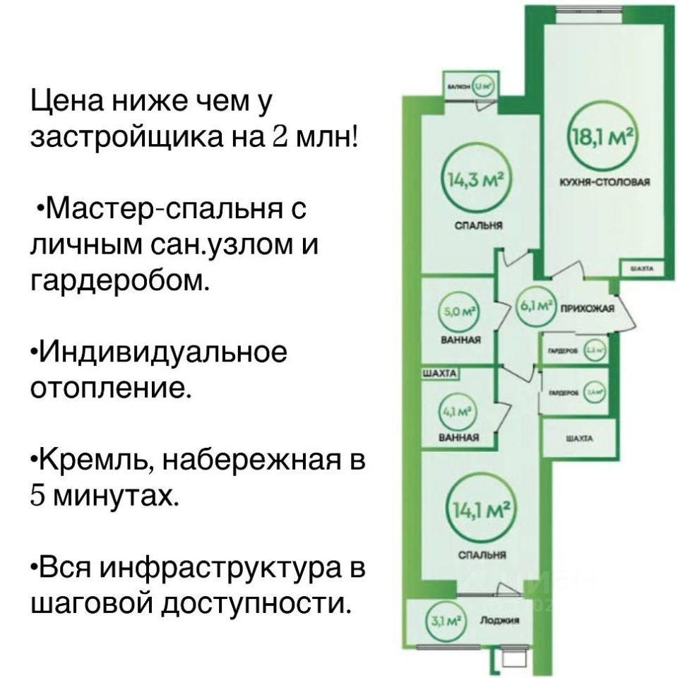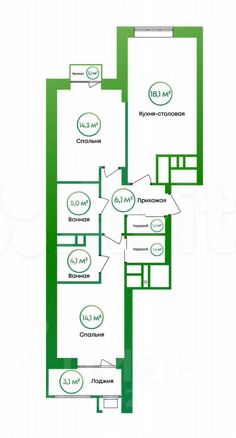 1 лоджия, 1 балкон