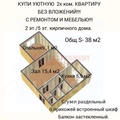 С РЕМОНТОМ И МЕБЕЛЬЮ!!!