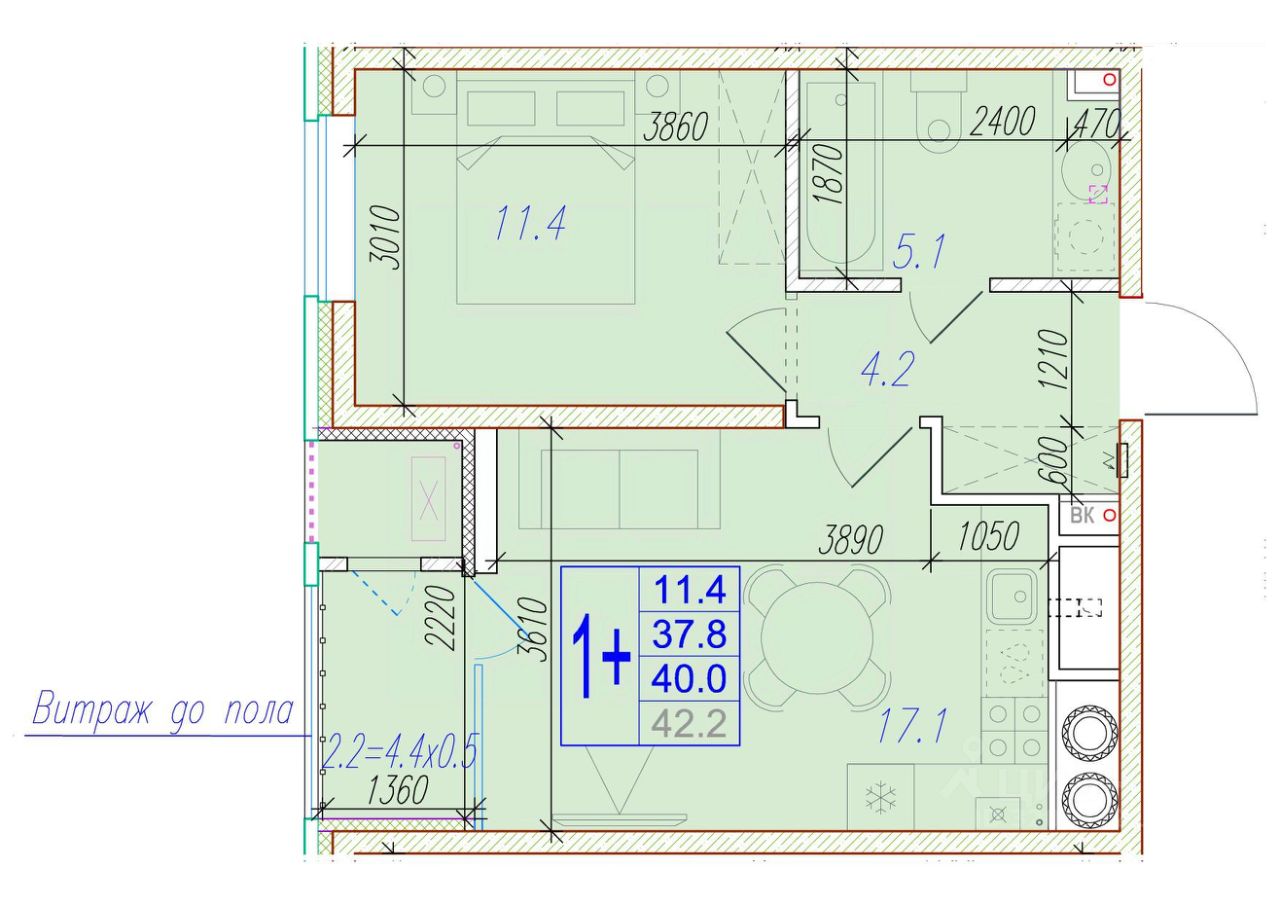 Общая площадь40 м²