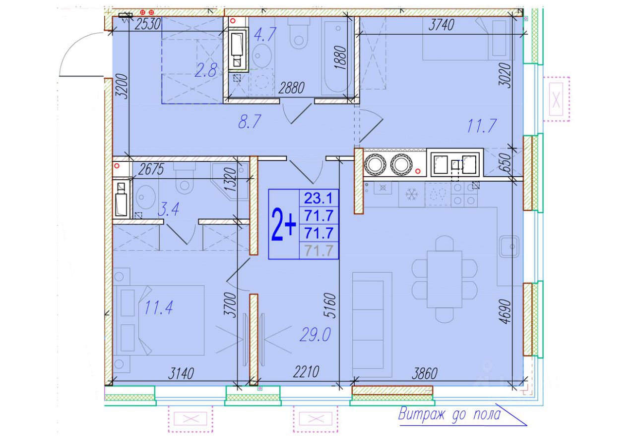 Общая площадь71,7 м²