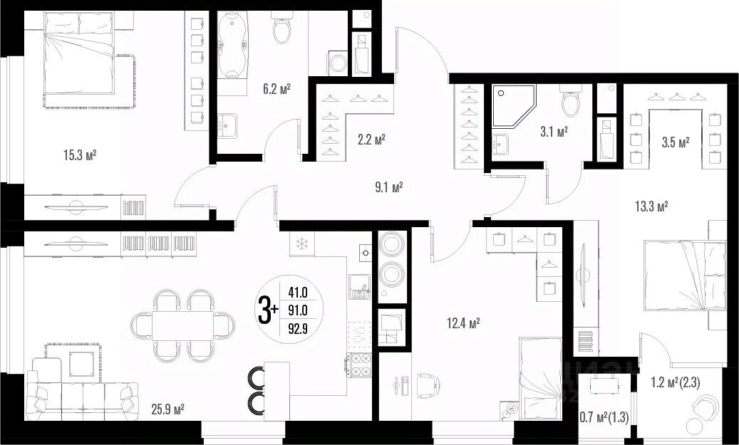 Общая площадь92,9 м²