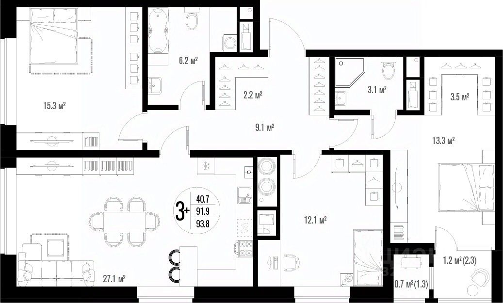 Приобрести квартиру в жилом квартале "Центральный" можно с предчистовой отделкой White Box или готовой отделкой под ключ от застройщика.