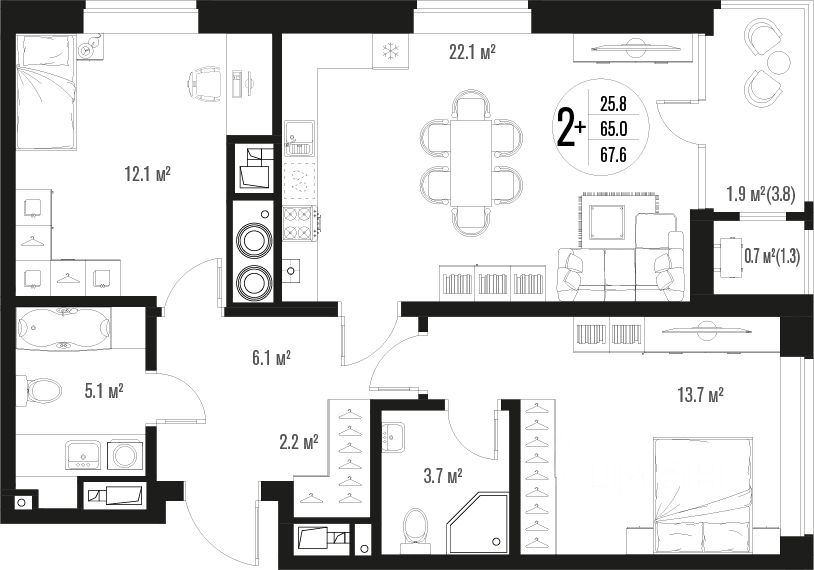 Площадь кухни22,1 м²