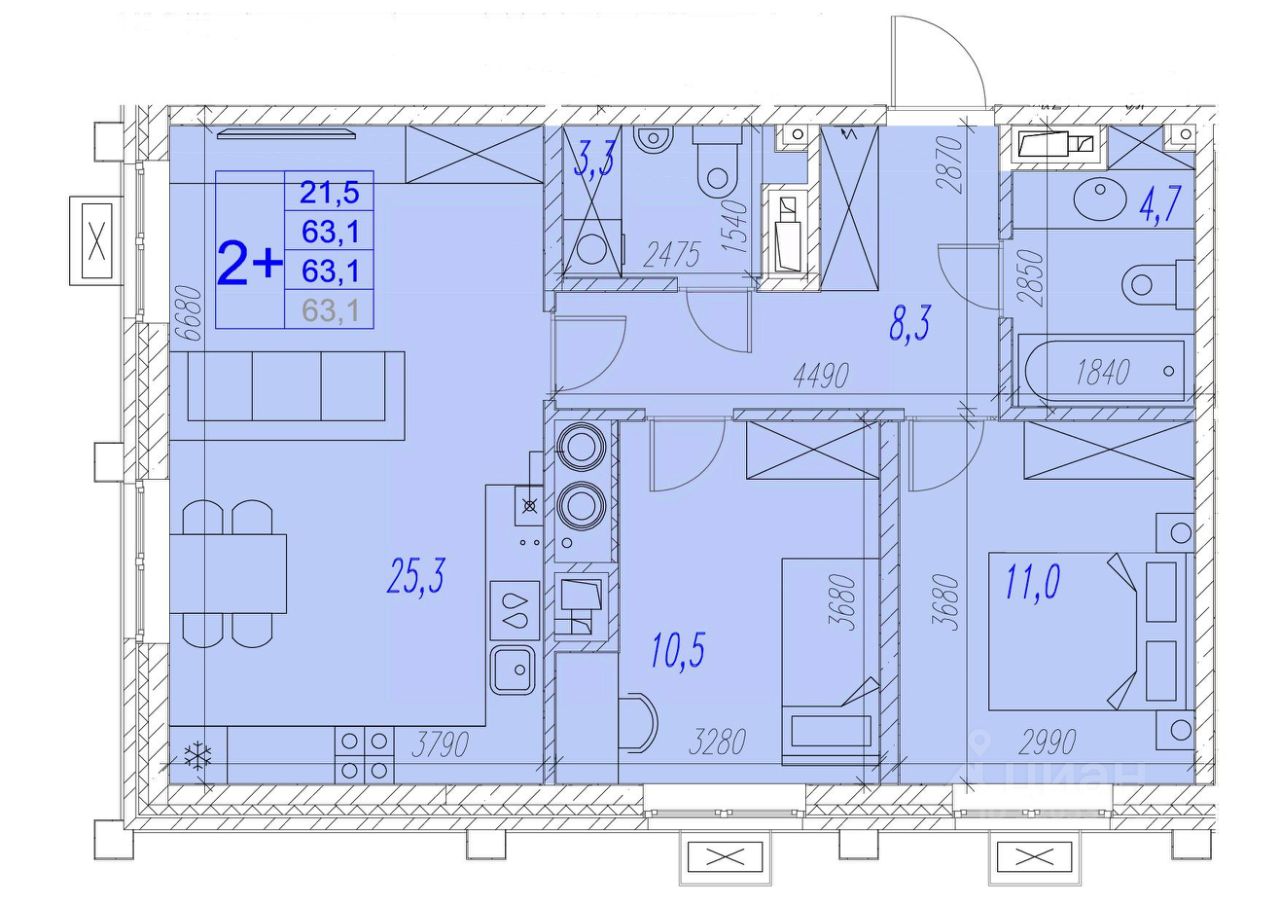 Общая площадь63,1 м²