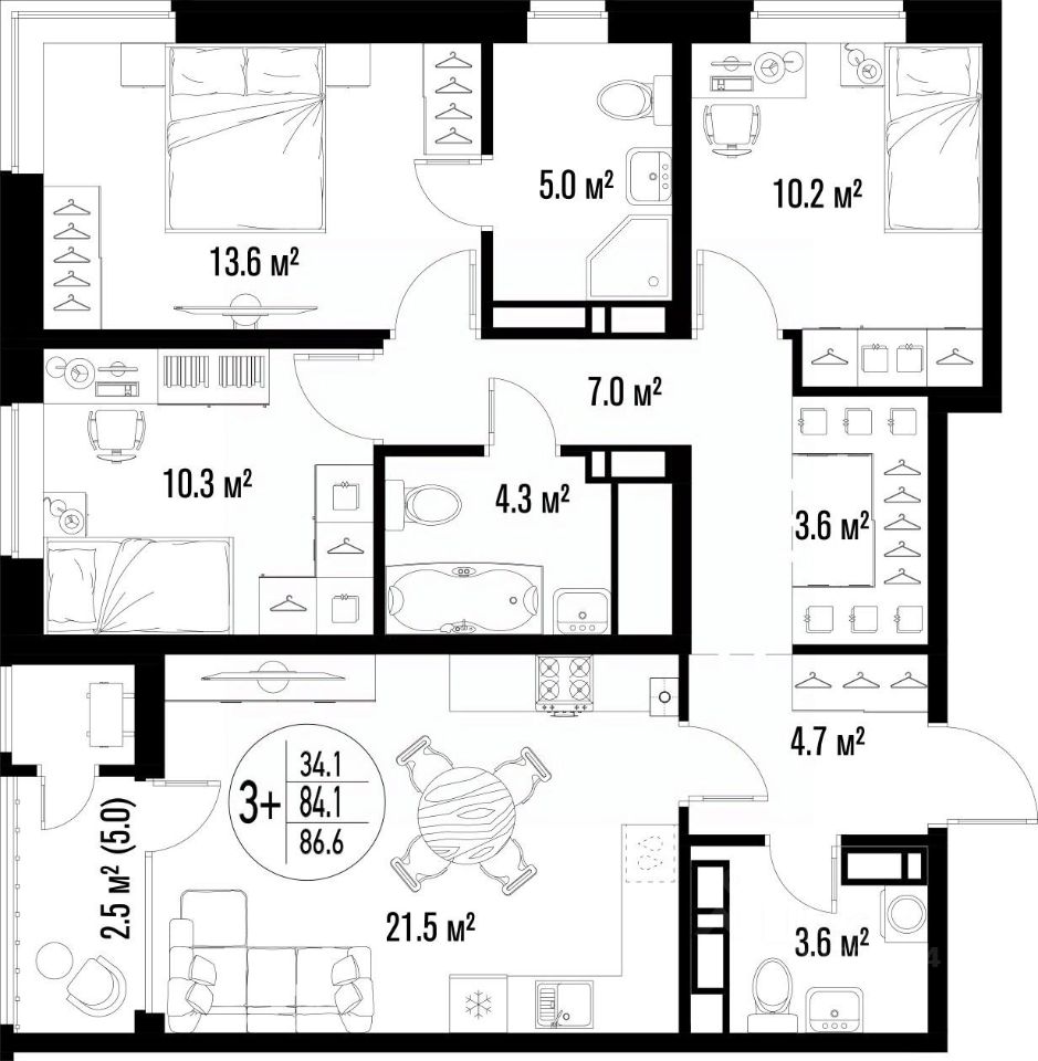 Общая площадь86,6 м²