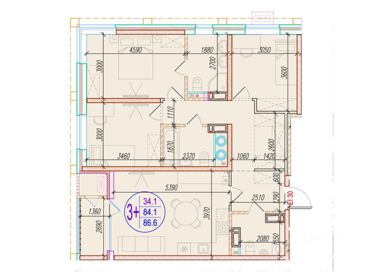 Общая площадь86,6 м²