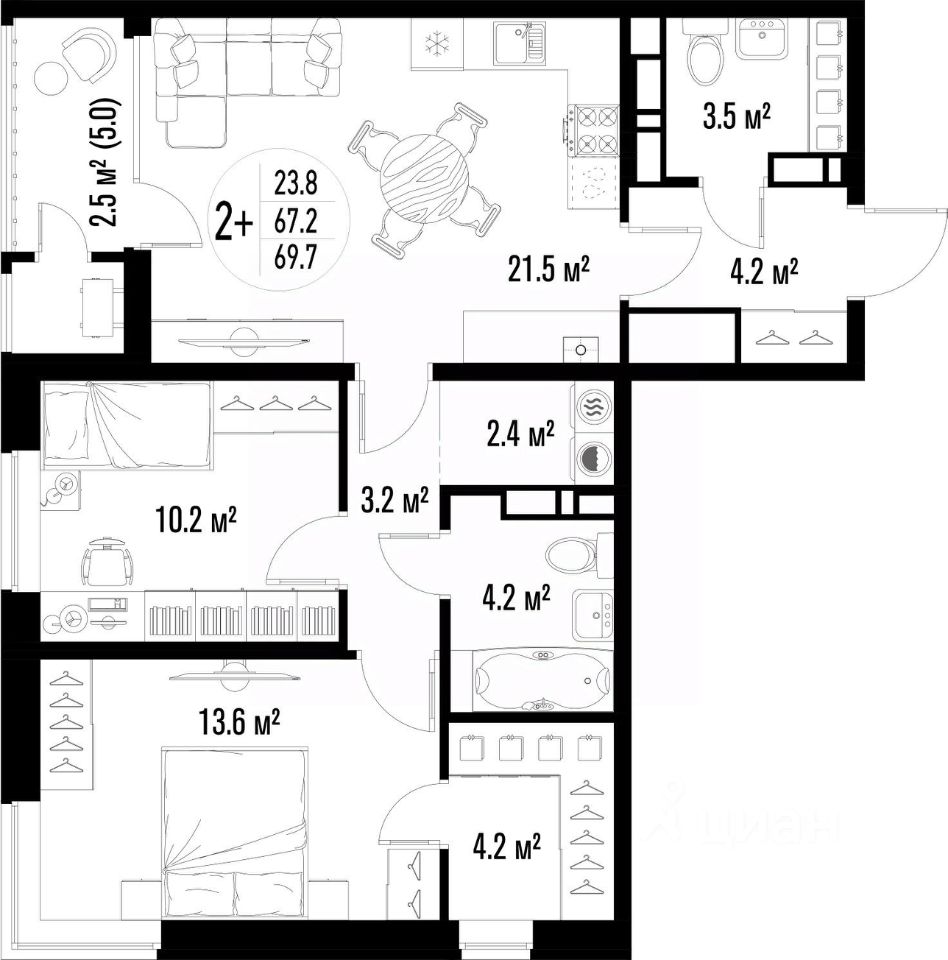Приобрести квартиру в жилом квартале "Центральный" можно с предчистовой отделкой White Box или готовой отделкой под ключ от застройщика.