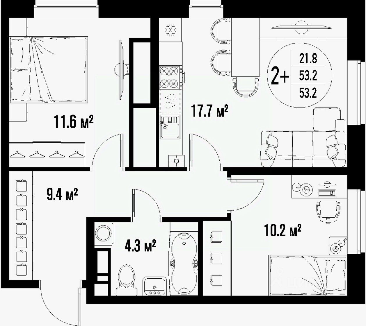 Общая площадь53,2 м²
