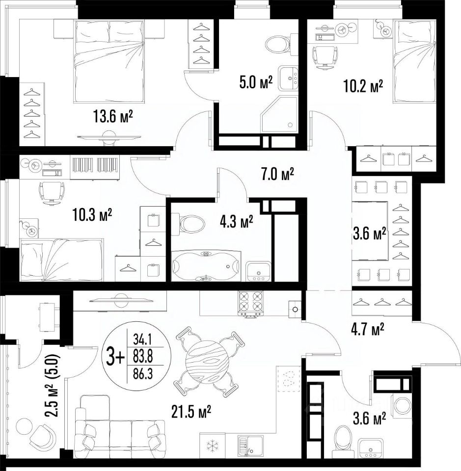 Приобрести квартиру в жилом квартале "Центральный" можно с предчистовой отделкой White Box или готовой отделкой под ключ от застройщика.