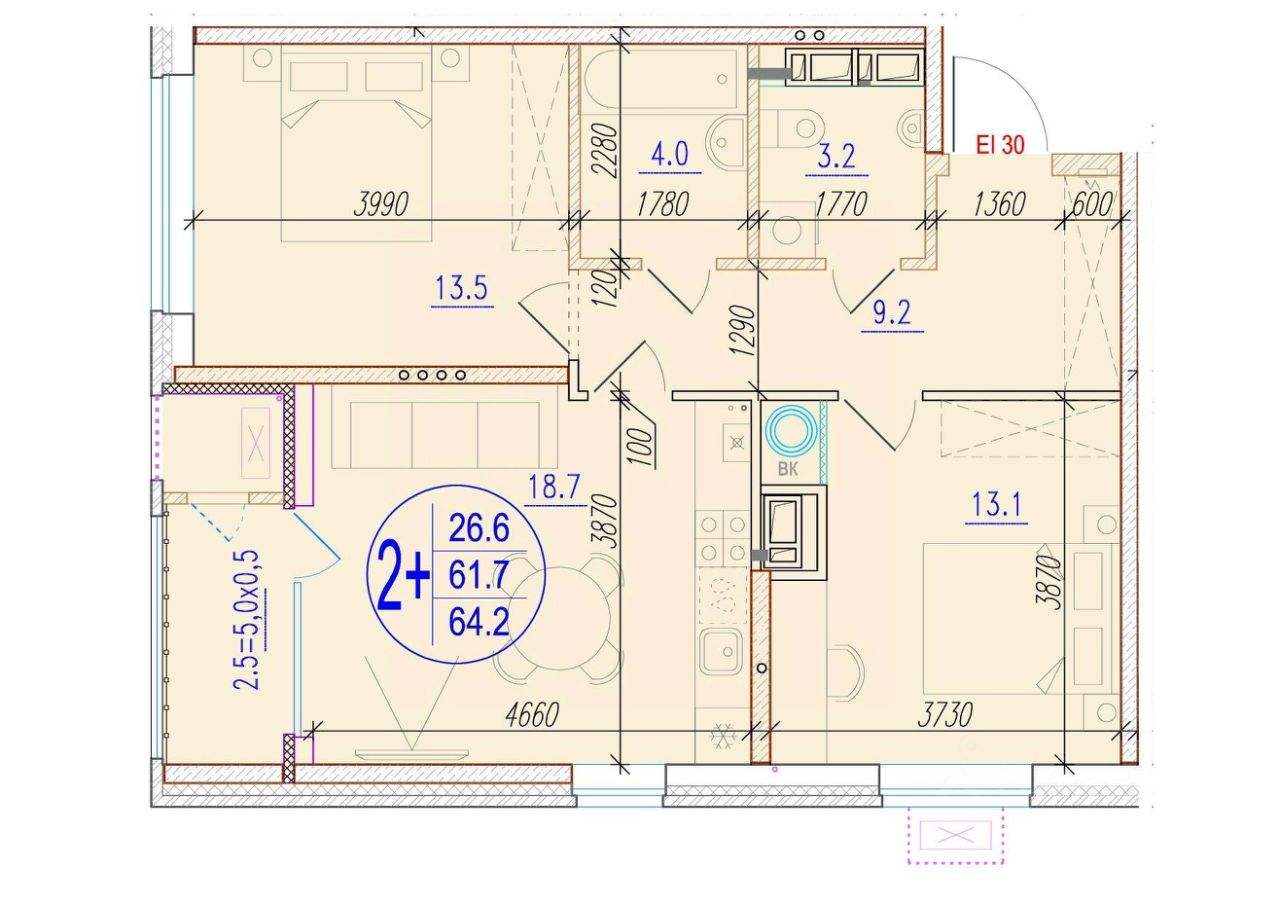 Общая площадь64,2 м²