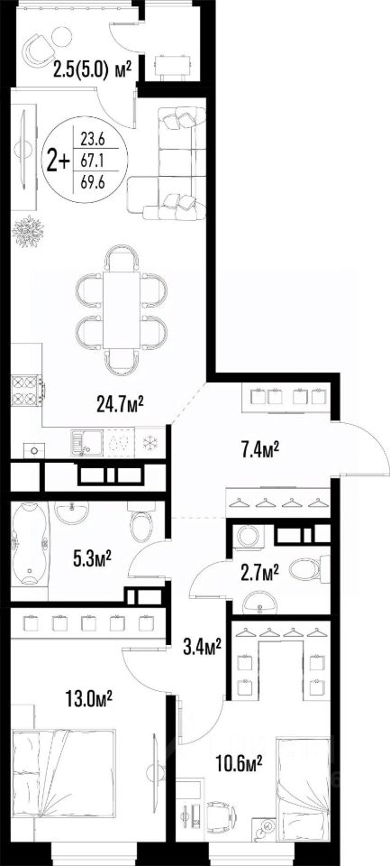 Приобрести квартиру в жилом квартале "Центральный" можно с предчистовой отделкой White Box или готовой отделкой под ключ от застройщика.