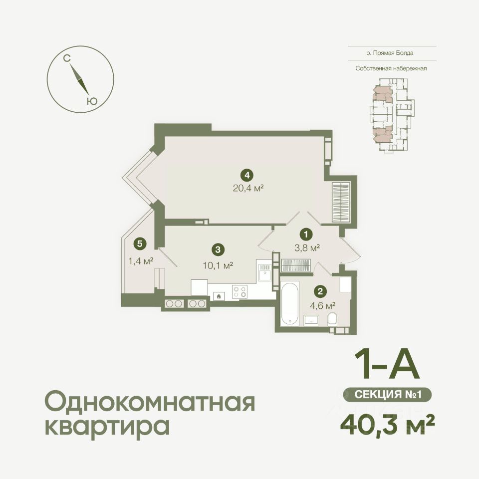 1-КОМНАТНАЯ КВАРТИРА 40,4 М²