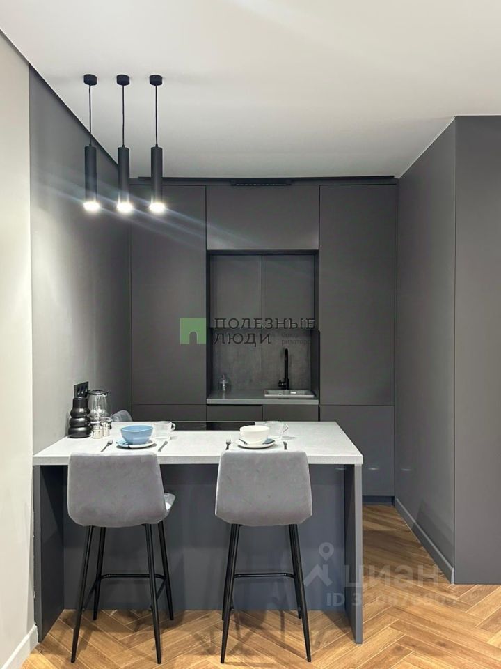 * Просторная Кухня-Гостиная: Сердце квартиры стильная кухня с встроенной техникой и элегантным островком, плавно переходящая в уютную гостиную.