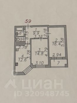 Газ, мебель. Общая площадь 57,9 м.