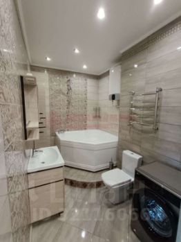 * Санузел совмещённый. В кафеле от KERAMA MARAZZI.Угловая ванна на подиуме.
