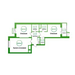 Общая площадь квартиры 72,9 м² В квартире две светлые изолированные комнаты площадью 14,3 м² и 15,6 м². В каждой из комнат есть источник света, ведь для каждой из комнат предусмотрен выход на балкон и на лоджию.