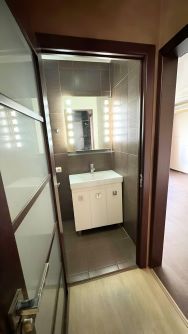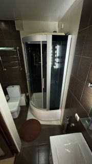 Санузел смежный, выложен кафельной плиткой, качественная сантехника, принудительная вытяжка, большое зеркало с подсветкой, электрический "теплый пол". Имеется встроенный водяной насос для лучшей подачи воды. Также остается газовый водонагреватель: никакие отключения горячей воды Вам не будут страшны!!!
