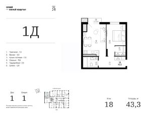 Продается 1-комн. квартира, 43,26 м²