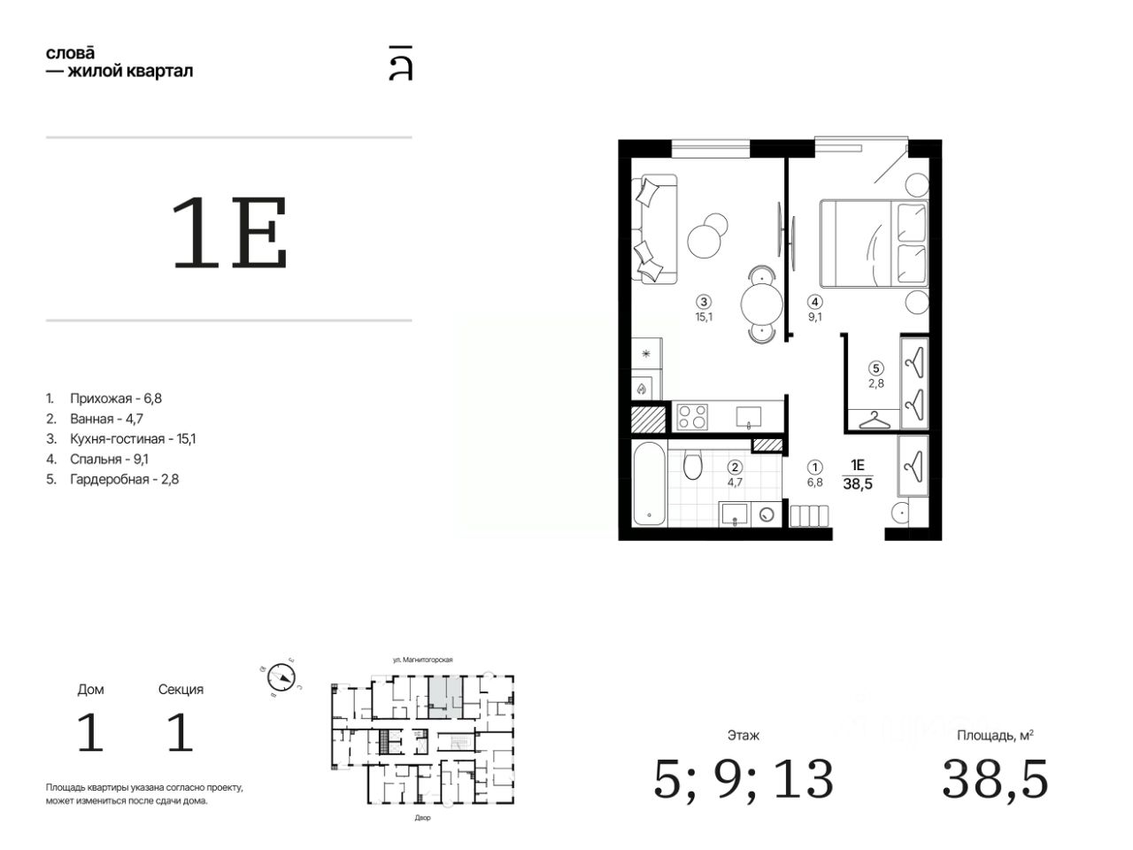 Общая площадь38,46 м²