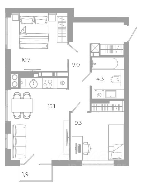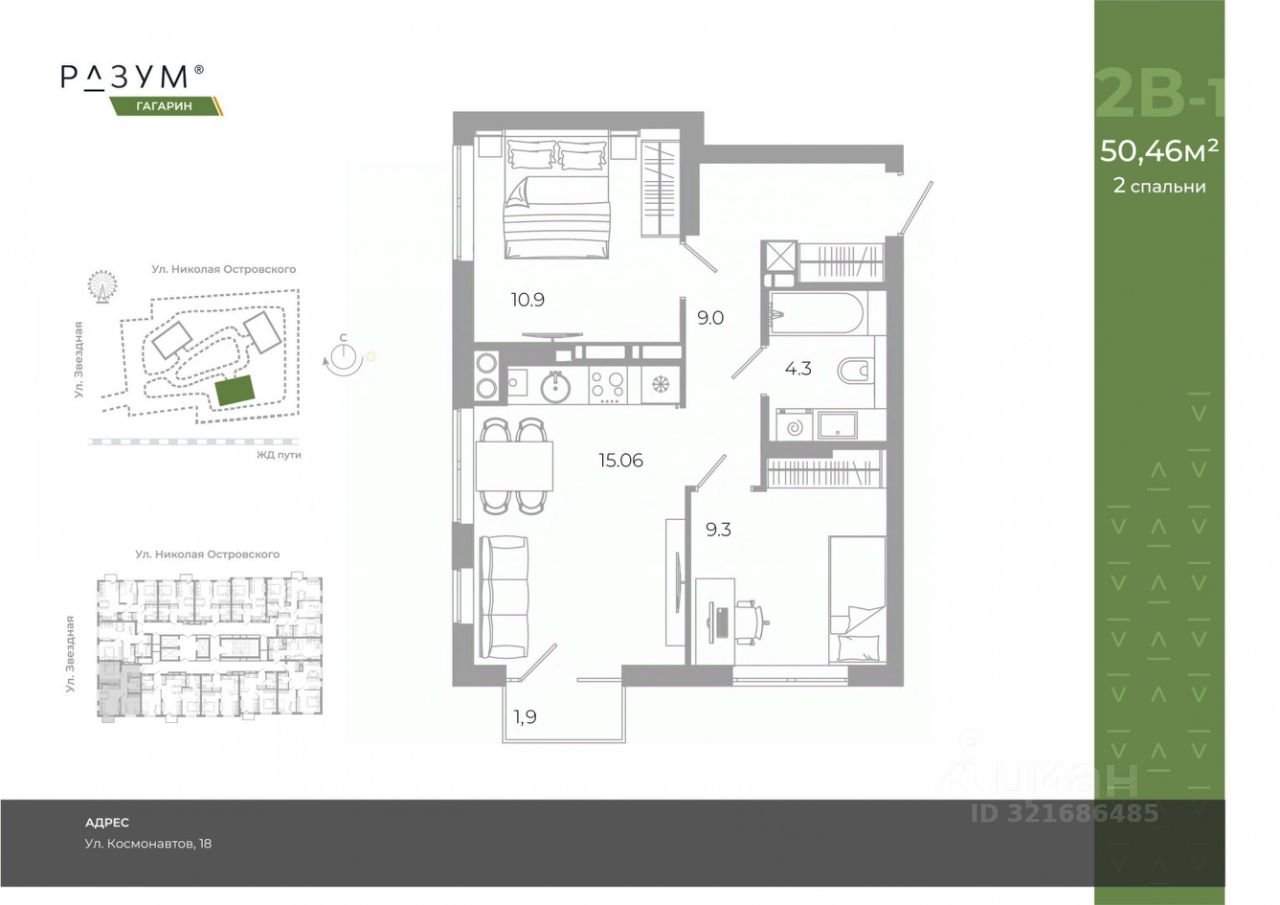 Квартира находится на 9 этаже, в отделке white box, индивидуальное отопление, функционал трехкомнатной. Закрытая придомовая территория общей площадью 2,8 гектара, 15 тематических зон, подъездные холы, велосипедные и колясочные, 350 парковочных мест, видеонаблюдение, погружные мусорные баки, физическая охрана, закрытая детская игровая.