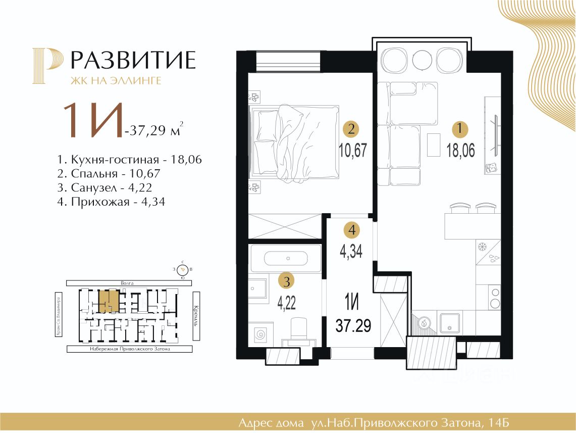 ЖК "РАЗВИТИЕ" — современный жилой комплекс класса Комфорт+ в центре города. Дом высотой 25 этажей расположен в престижной локации на Эллинге. В ЖК "РАЗВИТИЕ" уникальные видовые характеристики — из окон открываются панорамы на Приволжский затон, Волгу, Кремль и Храм Святого Владимира. Покупателям доступны 14 различных планировочных решений — от компактных студий площадью 23 м² до просторных 3-х комнатных квартир 75 м², с возможностью объединения квартир. Входные группы выполнены в формате дизайнерского лобби с четырёхметровыми потолками. Для удобства жителей предусмотрены: - консьерж-сервис, - кинозал, - детская игровая комната, - две велоколясочные, - гостевой санузел, - лапомойка для домашних животных. В доме установлено 7 современных лифтов и предусмотрено 46 кладовых помещений для хранения. Территория жилого комплекса полностью закрыта от посторонних и благоустроена: оборудованы детские и спортивные площадки, дорожка для скейтборда и велоспорта, зоны отдыха и прогулок.