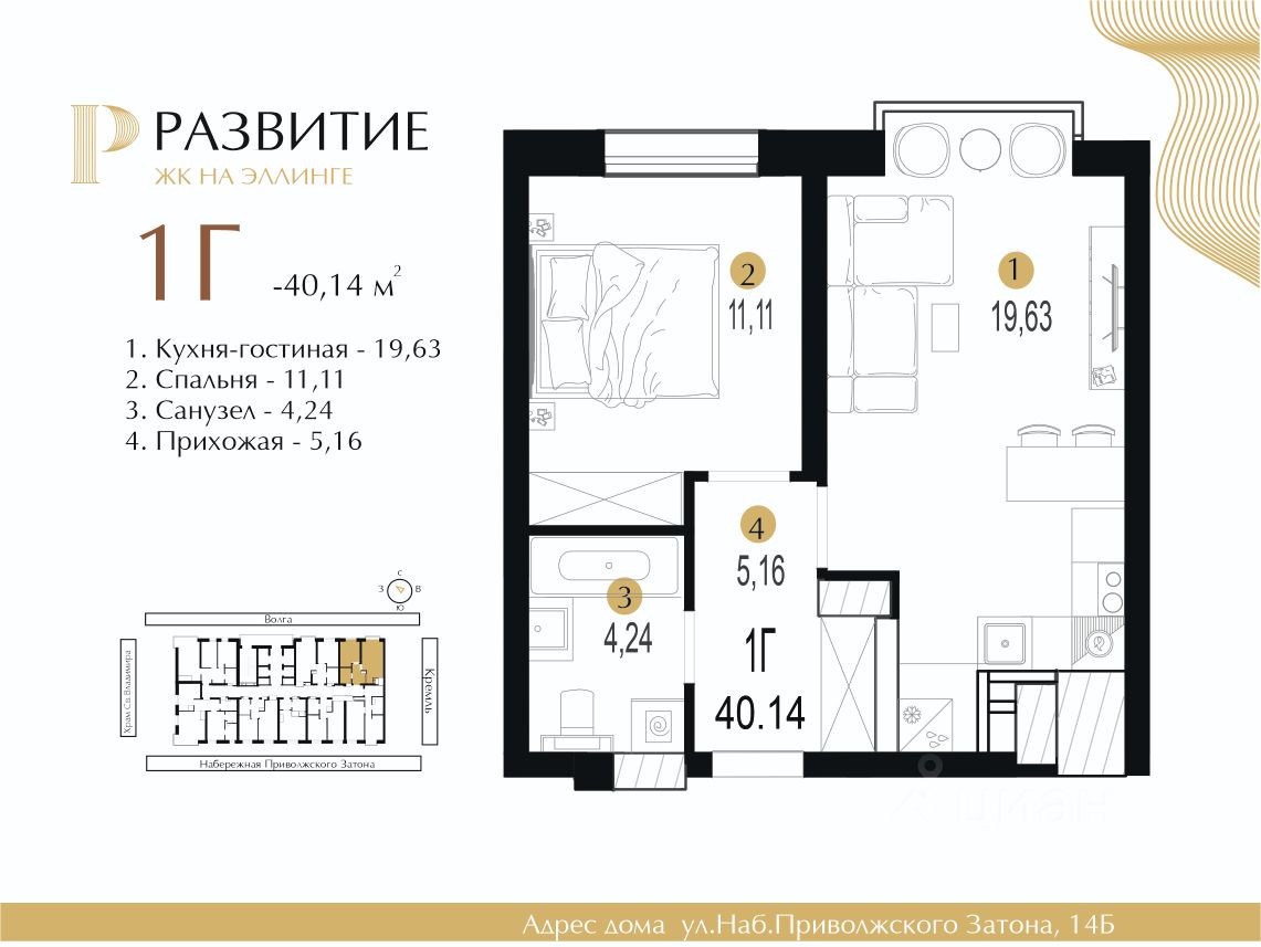 ЖК "РАЗВИТИЕ" — современный жилой комплекс класса Комфорт+ в центре города. Дом высотой 25 этажей расположен в престижной локации на Эллинге. В ЖК "РАЗВИТИЕ" уникальные видовые характеристики — из окон открываются панорамы на Приволжский затон, Волгу, Кремль и Храм Святого Владимира. Покупателям доступны 14 различных планировочных решений — от компактных студий площадью 23 м² до просторных 3-х комнатных квартир 75 м², с возможностью объединения квартир. Входные группы выполнены в формате дизайнерского лобби с четырёхметровыми потолками. Для удобства жителей предусмотрены: - консьерж-сервис, - кинозал, - детская игровая комната, - две велоколясочные, - гостевой санузел, - лапомойка для домашних животных. В доме установлено 7 современных лифтов и предусмотрено 46 кладовых помещений для хранения. Территория жилого комплекса полностью закрыта от посторонних и благоустроена: оборудованы детские и спортивные площадки, дорожка для скейтборда и велоспорта, зоны отдыха и прогулок.