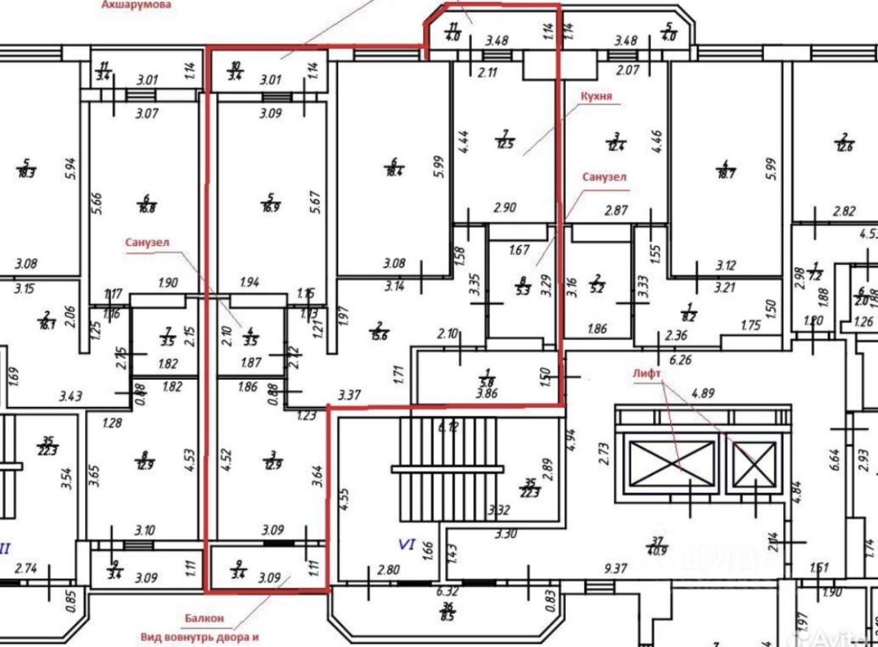 Площадь: 90.9 м² (с учётом трёх балконов — 102 м²)