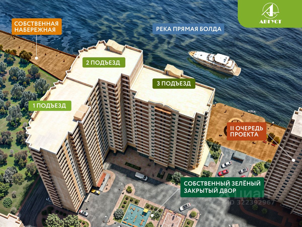 Окна выходят как во двор комплекса с видом на город, так и на реку Прямая Болда.